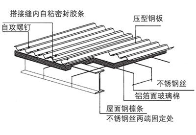 彩色鋼板玻璃絲棉夾芯板上下兩層彩色壓型鋼板通過龍骨和玻璃棉組合而成,分為屋面板和墻面用板兩類。掛網(wǎng)式玻璃夾芯板是用不銹鋼絲代替下層彩色壓型鋼板的一種新型保溫屋面材料。玻璃絲棉夾芯板可按壓型板的各類板型。具有良好的防火性能,適用于大型公共建筑、工業(yè)廠房及其它建筑的墻面和屋面。
