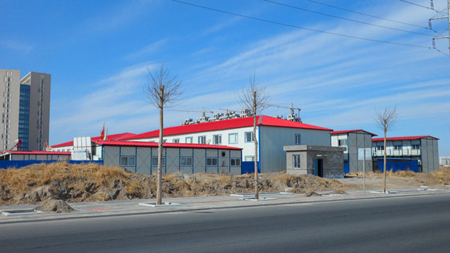含雙層焊接式辦公樓1913.6㎡、可拆裝式辦公區(qū)及宿舍3863.7㎡,總建筑面積5777.3㎡